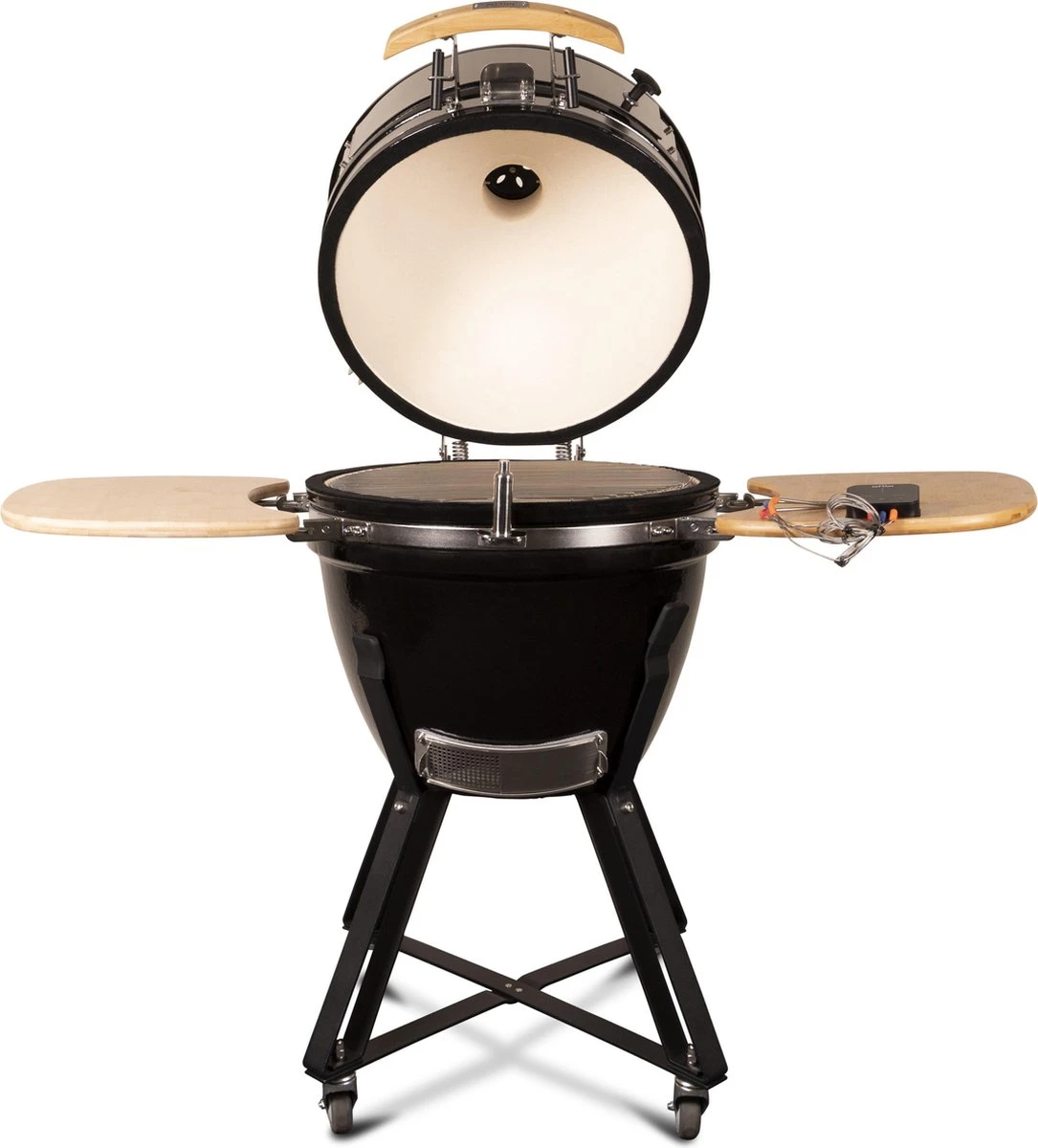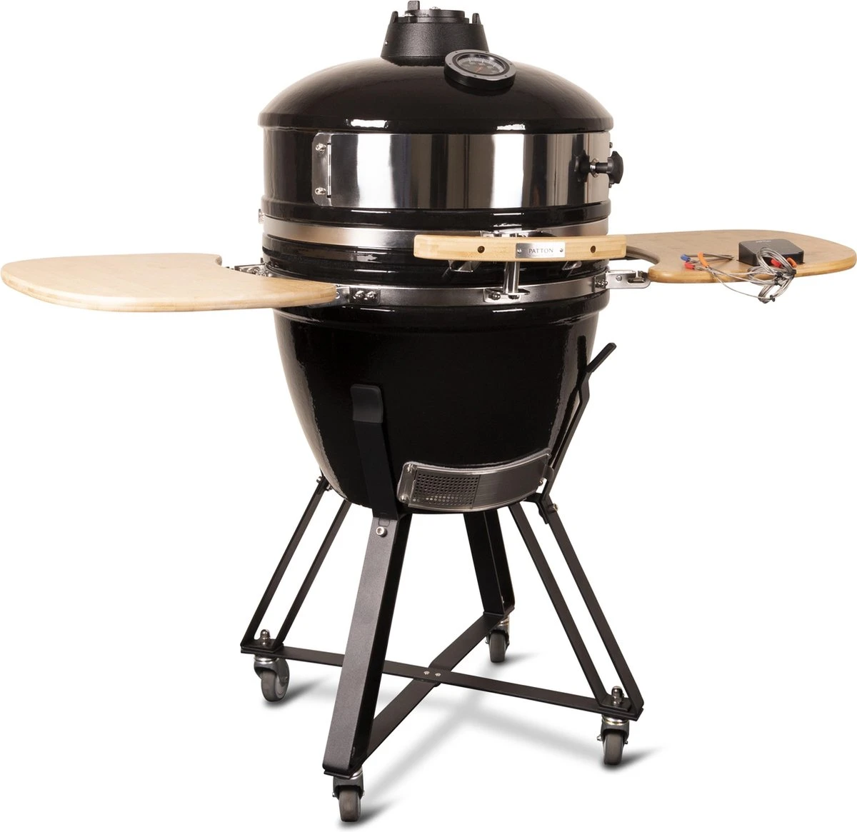 Patton – Kamado 21 – Premium Black – Barbecue En Céramique – Avec Indicateur De Température à Cœur Bluetooth – éclairage LED – Grand Modèle – Complet – Noir