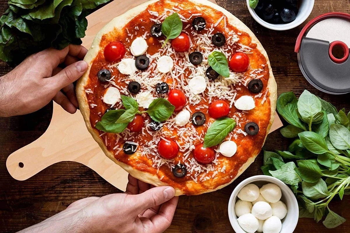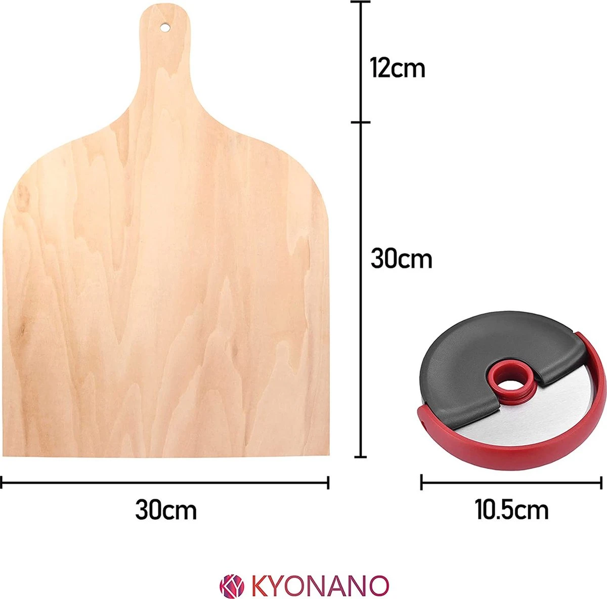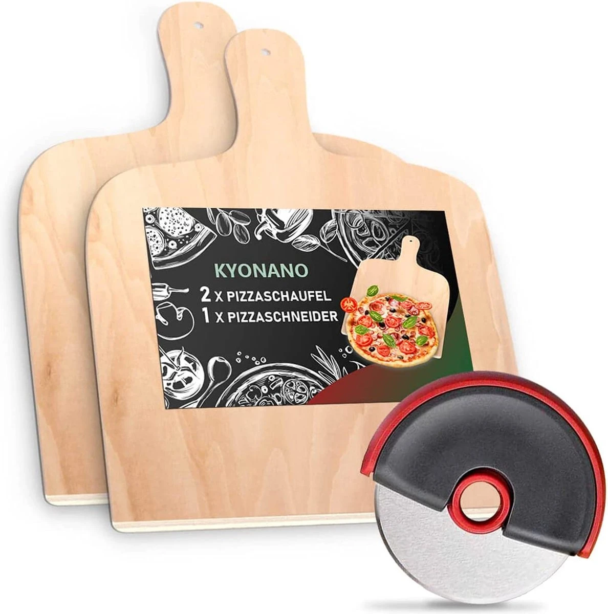 Pelle à Pizza KYONANO, 2 Pelles à Pizza En Bois + 1 Coupe-pizza En Acier Inoxydable, Pelle à Pizza En Bois De Bouleau, Pelle à Pain 30 X 42 Cm, Pelle à Pizza Pour Pierre à Pizza (lot De 3)