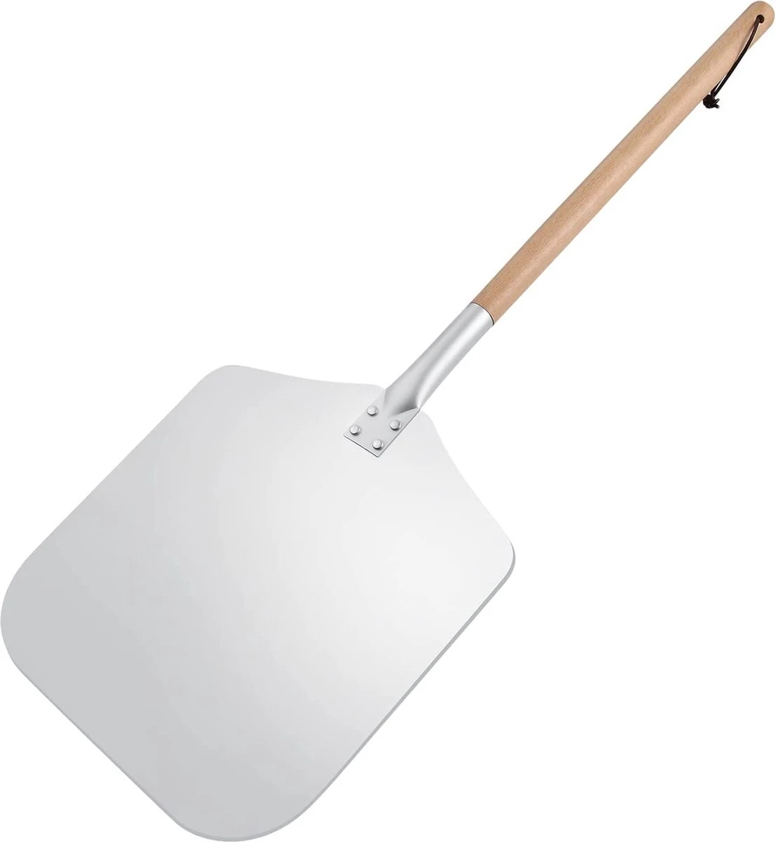 - Plateau à pizza en aluminium Premium de gamme : plateau à pizza au design élégant (30,5 x 30,5 cm) en aluminium très résistant et épais. Dispose d’une poignée en bois extrêmement durable pour une utilisation avec votre four à pizza.