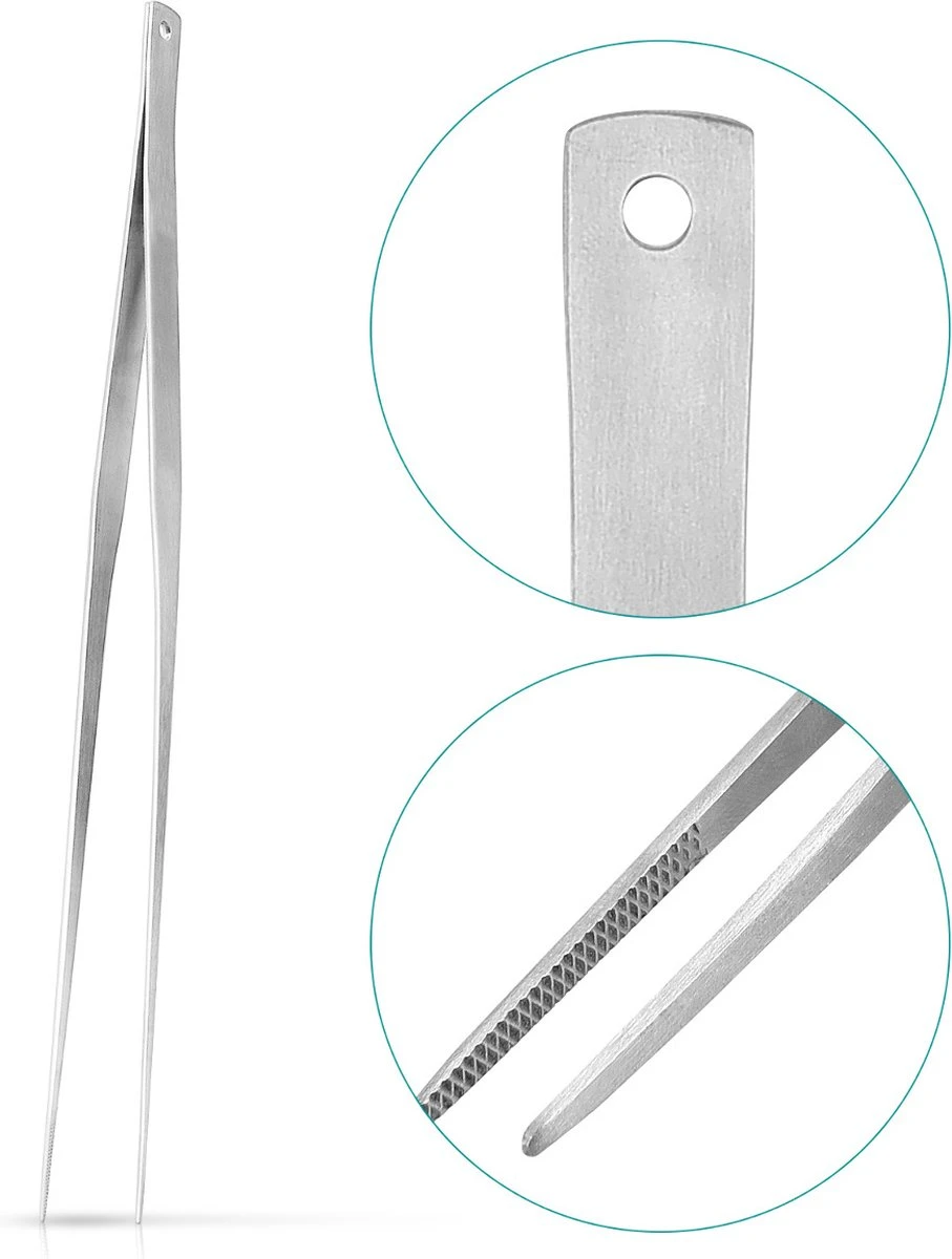 - PIETJE PRECISE : Cette pince à épiler est très adaptée aux travaux de précision. Cette pince à épiler de cuisine est très pratique non seulement pour retourner la viande, mais aussi pour préparer des assiettes en détail pour des dîners chiquere de style « gastronomie ».