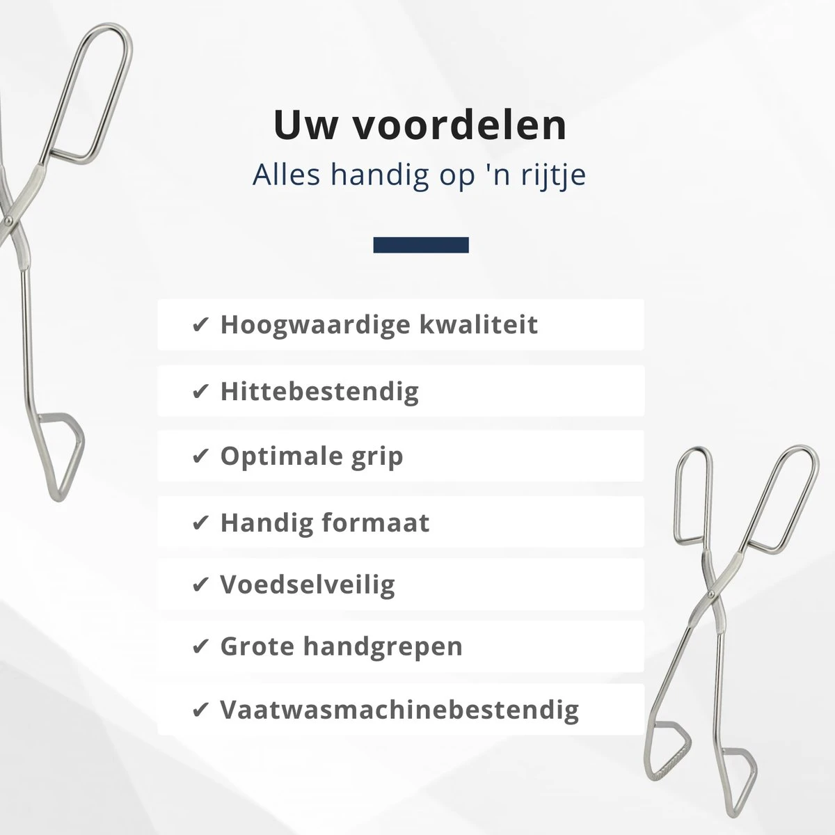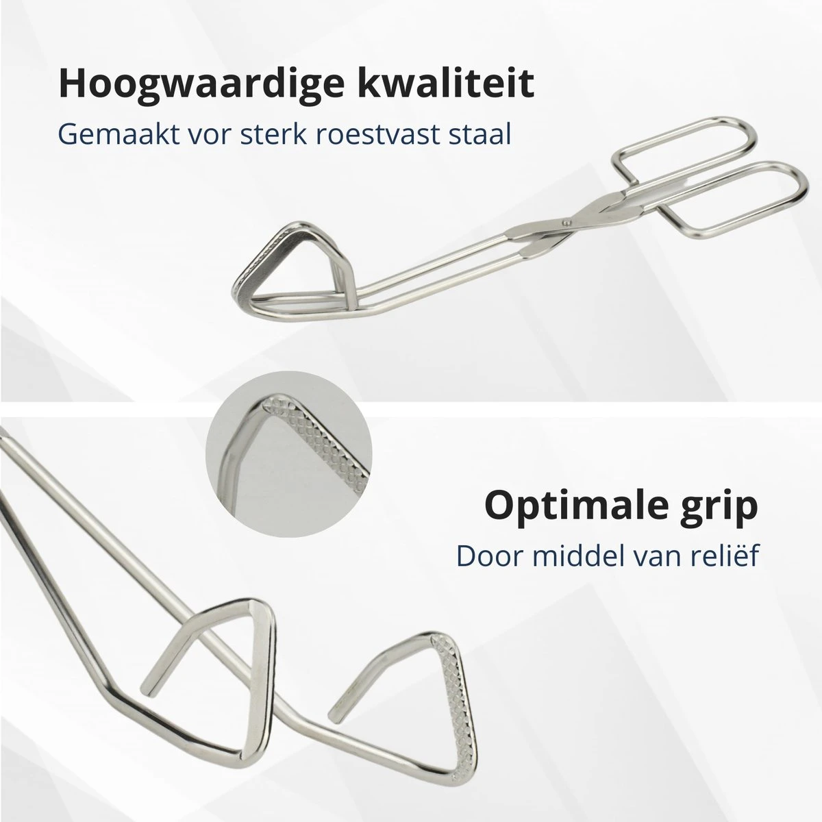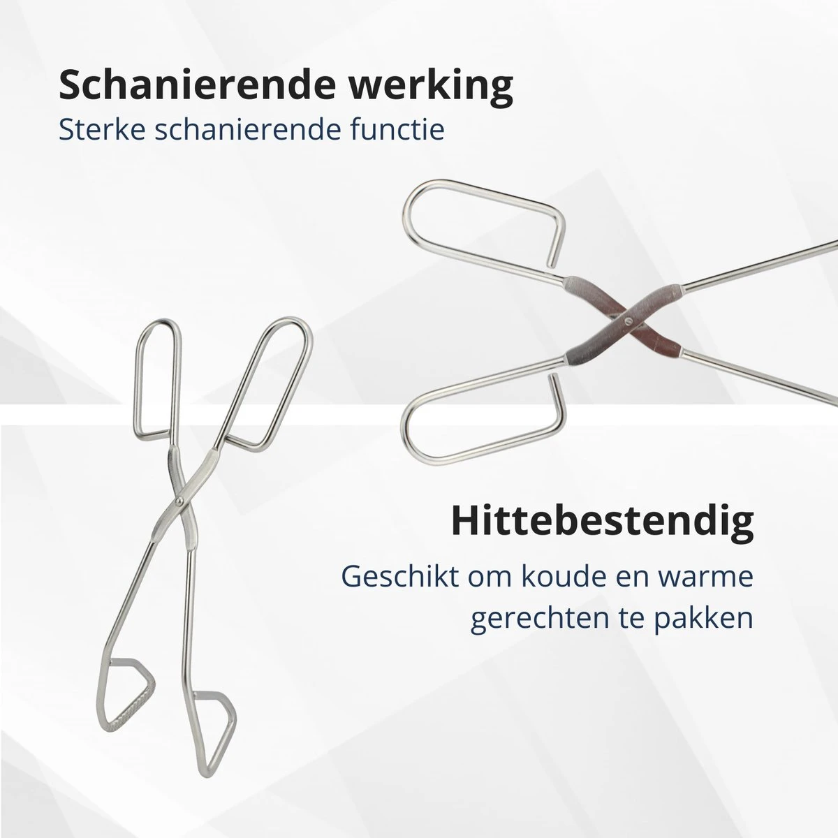 Les pinces de cuisine Veluw sont entièrement fabriquées en acier inoxydable de haute qualité et ont une bouche incurvée. Cela facilite la saisie des produits et des collations chaudes. Les pinces conviennent à une utilisation quotidienne intensive dans la cuisine professionnelle. Même le chef amateur à la maison aime utiliser ces pinces de cuisine Veluw dans la cuisine.