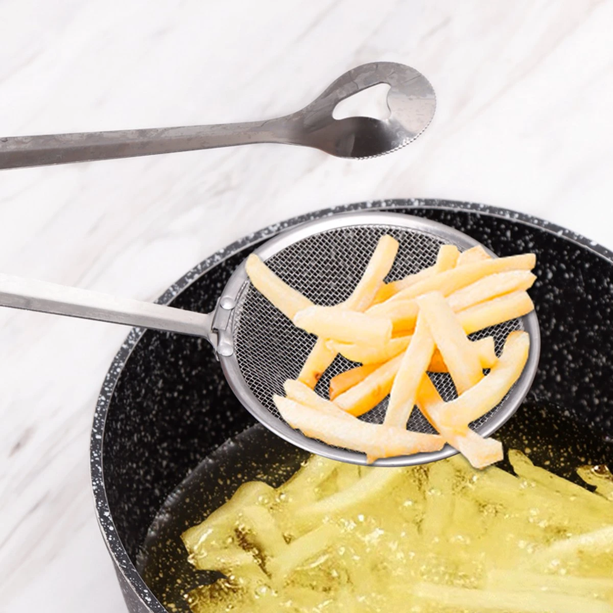 – La pince creuse draine l’excès de graisse dans la casserole pour rendre les aliments plus sains.