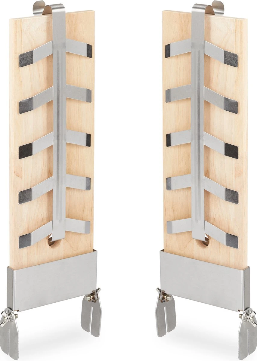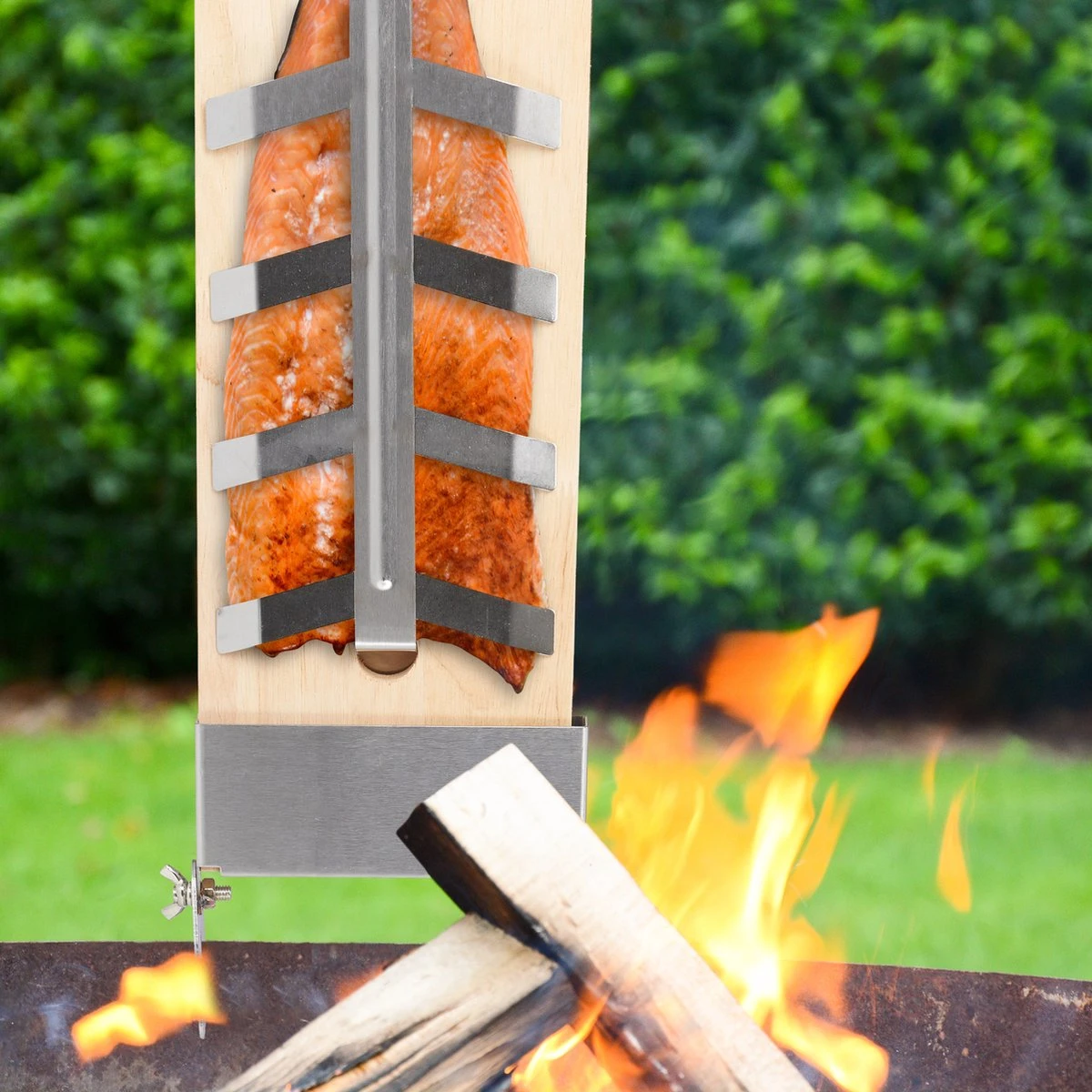Avec cet ensemble de 2 planches à saumon, vous offrez plus de variété sur le barbecue. Avec les planches à fumer en bois d’hévéa non traité, vous pouvez préparer le saumon de manière traditionnelle. Tout ce que vous avez à faire est de fixer le poisson à la planche de bois avec des pinces en acier inoxydable. Fixez ensuite la planche à fumer au bord du barbecue ou du bol à feu à l’aide des supports. Vous pouvez fixer le support sur 5 niveaux différents, de sorte que vous ayez la distance parfaite par rapport au feu.