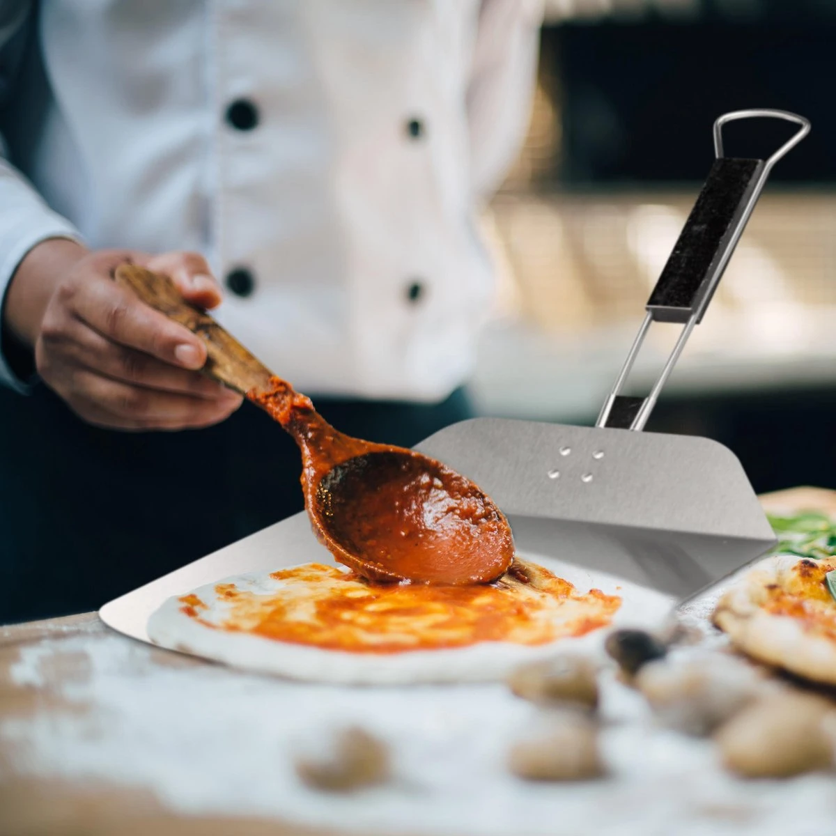 – Facile à passer sous la pizza grâce à la cuillère plate