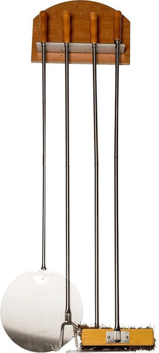 Cet ensemble de pizza se compose de 4 attributs que vous utiliserez tous lors de la cuisson de pizzas dans un four à bois. L’ensemble à pizza est fabriqué en acier inoxydable de haute qualité et contient un crochet de poker, une glissière, un balai et une cuillère à pizza.
