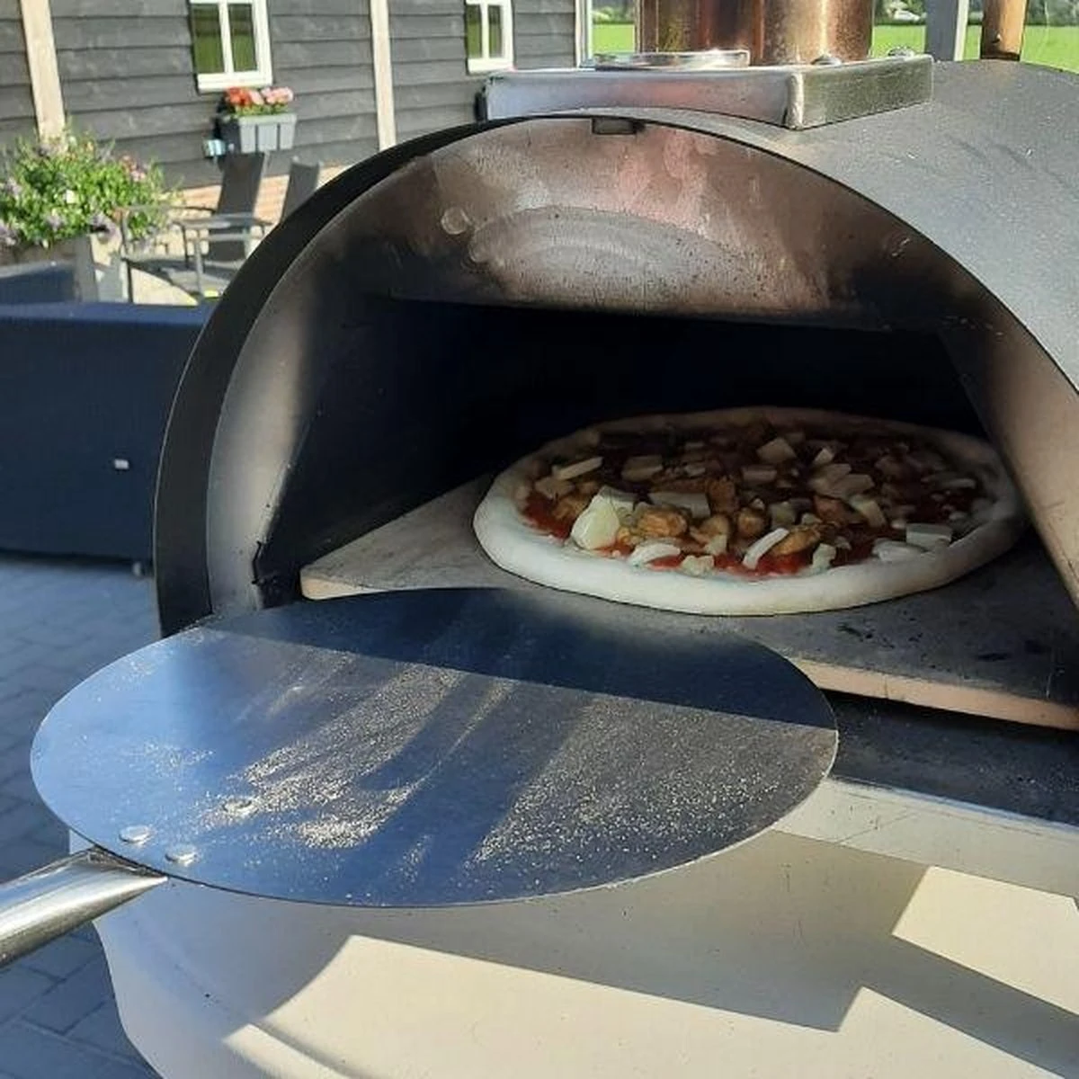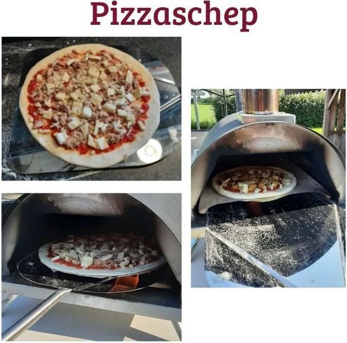 Ensemble de pelle à pizza professionnelle en acier inoxydable. Fabriqué en Italie et indispensable pour cuire des pizzas parfaites et nettoyer le four à pizza. Cet ensemble est idéal pour cuire des pizzas d’un diamètre de 30 cm.