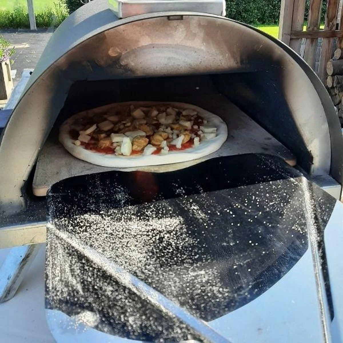 Avec la pelle rotative à pizza, vous pouvez retourner la pizza pendant la cuisson.