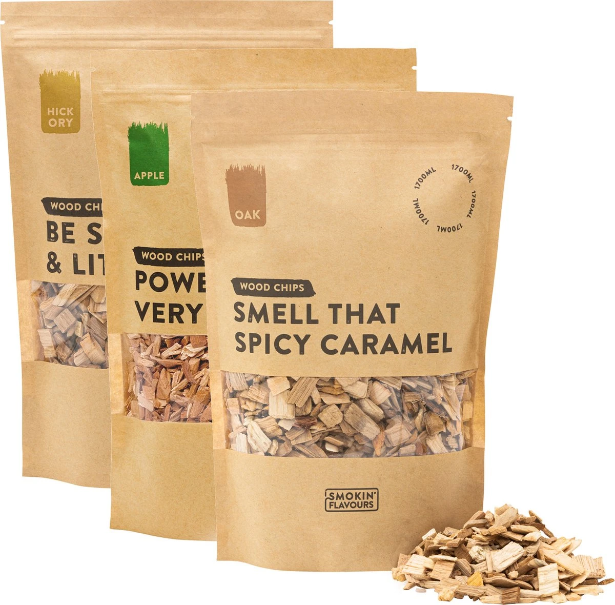 Avantage Extra avec ce multipack ! 3 copeaux de fumée Smokin’ Flavours de 1700 ml. Arômes de chêne, de pomme et de noyer. Les saveurs les plus couramment utilisées et donc un bel ensemble à acheter ensemble.
