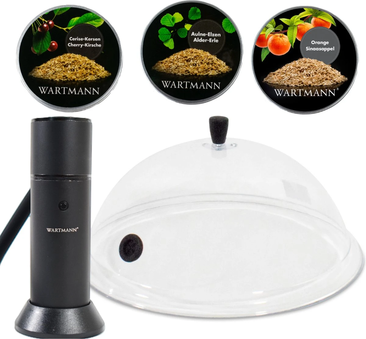 Du Masterchef au restaurant étoilé Michelin, ce fumoir Wartmann® est indispensable dans les cuisines modernes. Vous mettez de la pyrale du bois ou des herbes au sommet de votre appareil à fumer, l’allumez et vous pouvez faire les combinaisons de saveurs les plus spéciales.