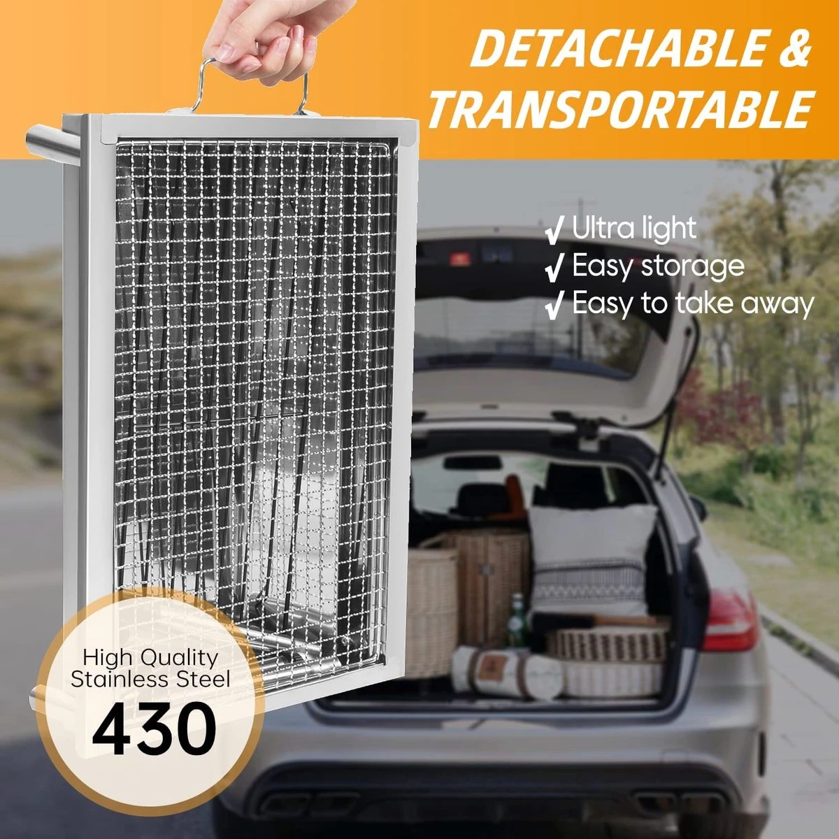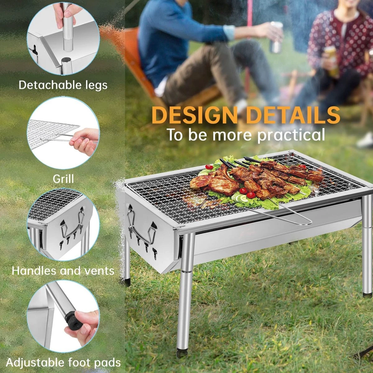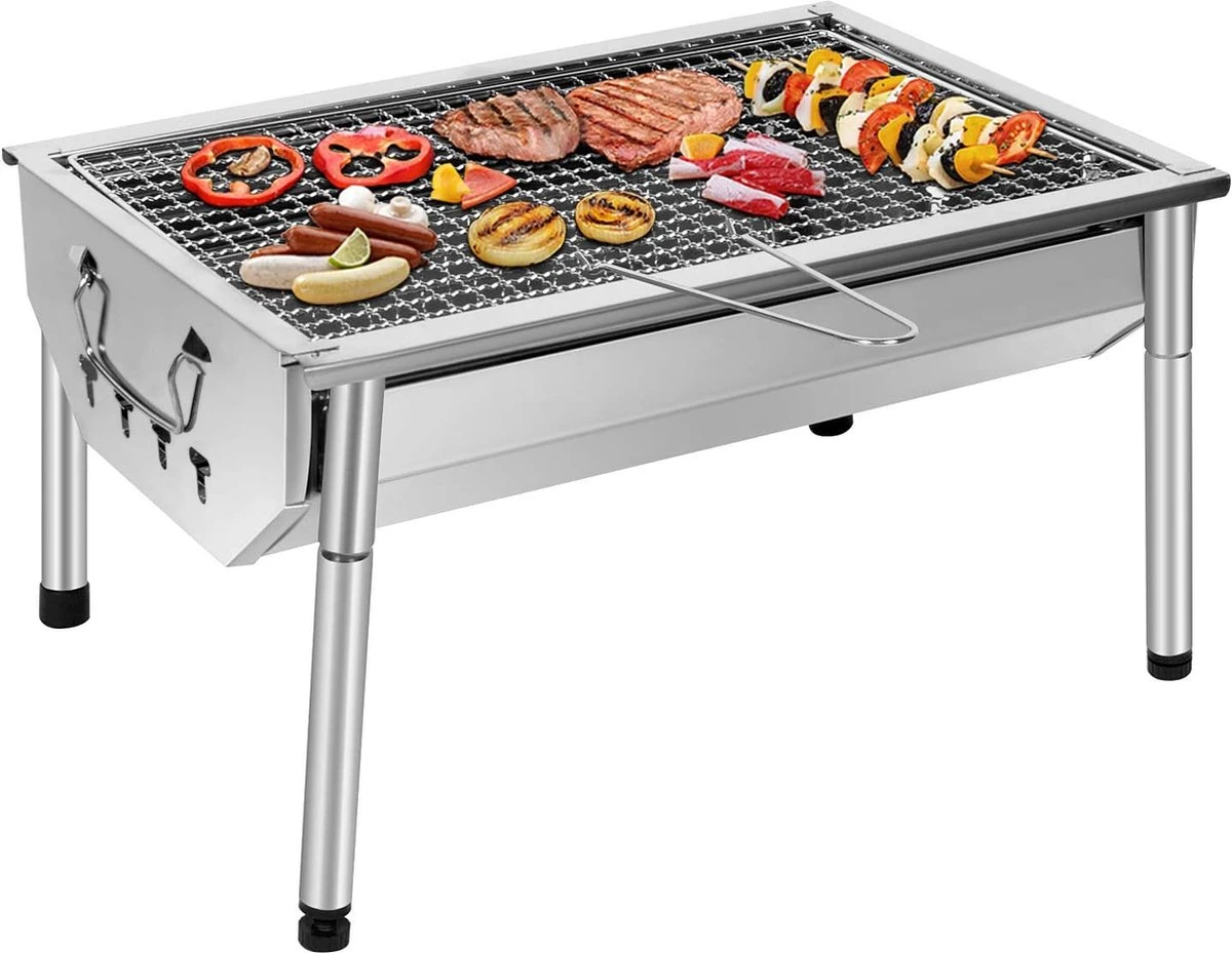 SunJas Barbecue Pique-Nique Barbecue à Charbon De Bois En Acier Inoxydable Petit Grill Barbecue De Camping Portable Grilles Amovibles Pour Fête De Jardin En Outdoor Etc (40 X 28 X 21,5 Cm)