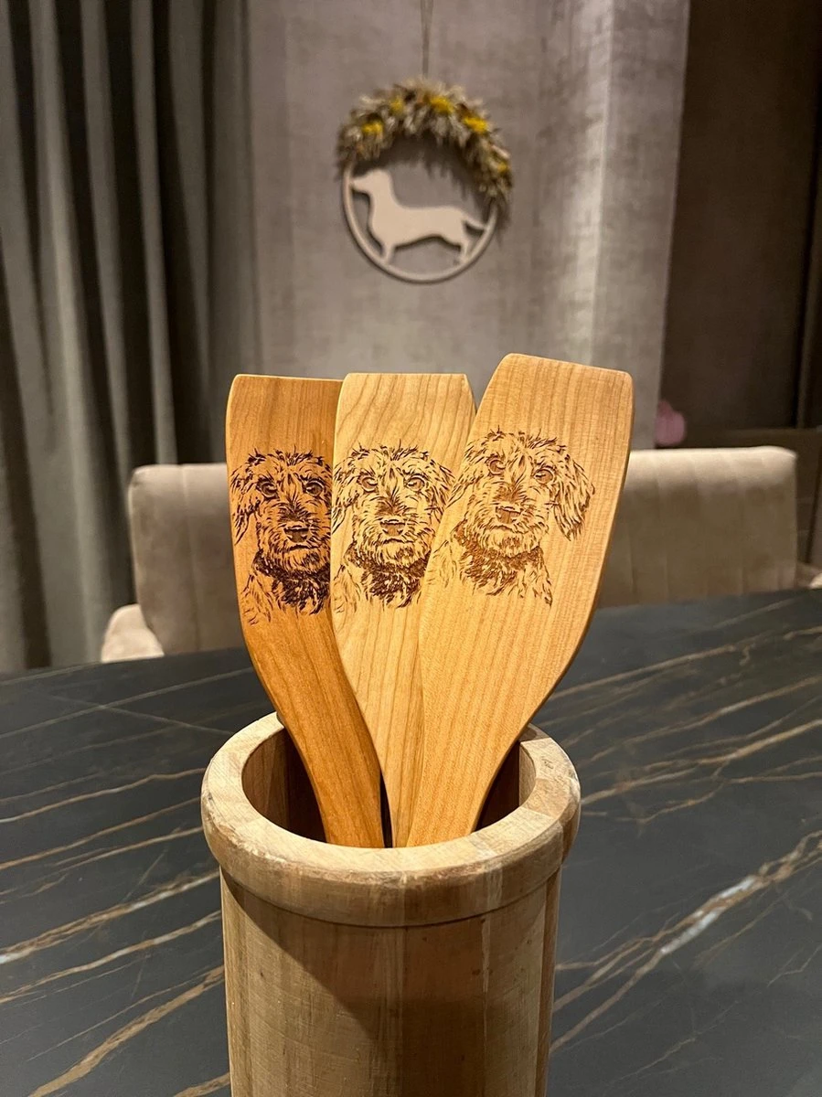 Cette belle spatule de cuisine avec torchon assorti (20x22cm) est non seulement amusante à utiliser mais aussi un plaisir à regarder pour tout amateur de teckel à poil dur !