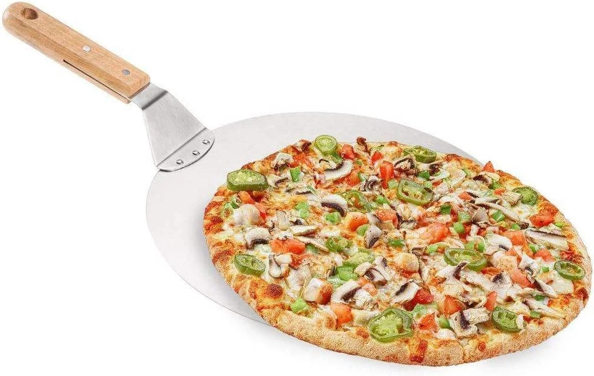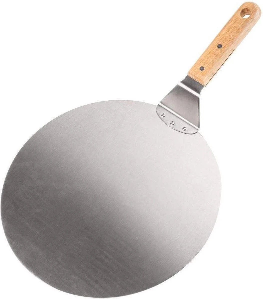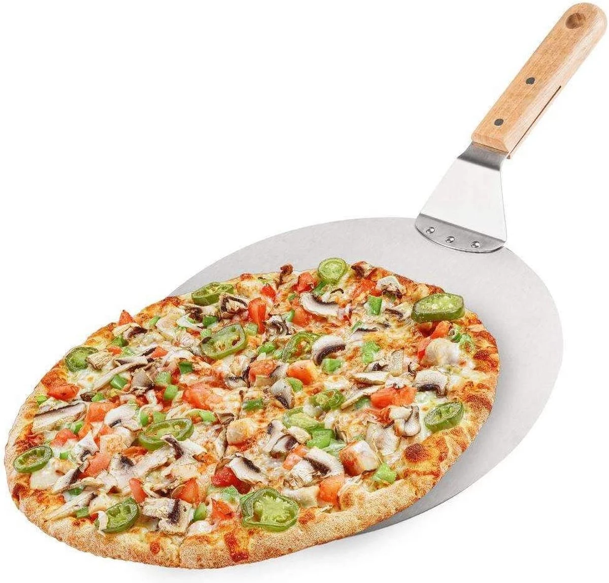- Une pelle pour porter, pousser et servir la pizza. Également utile pour la cuisson du pain, des gâteaux et d’autres produits de boulangerie.