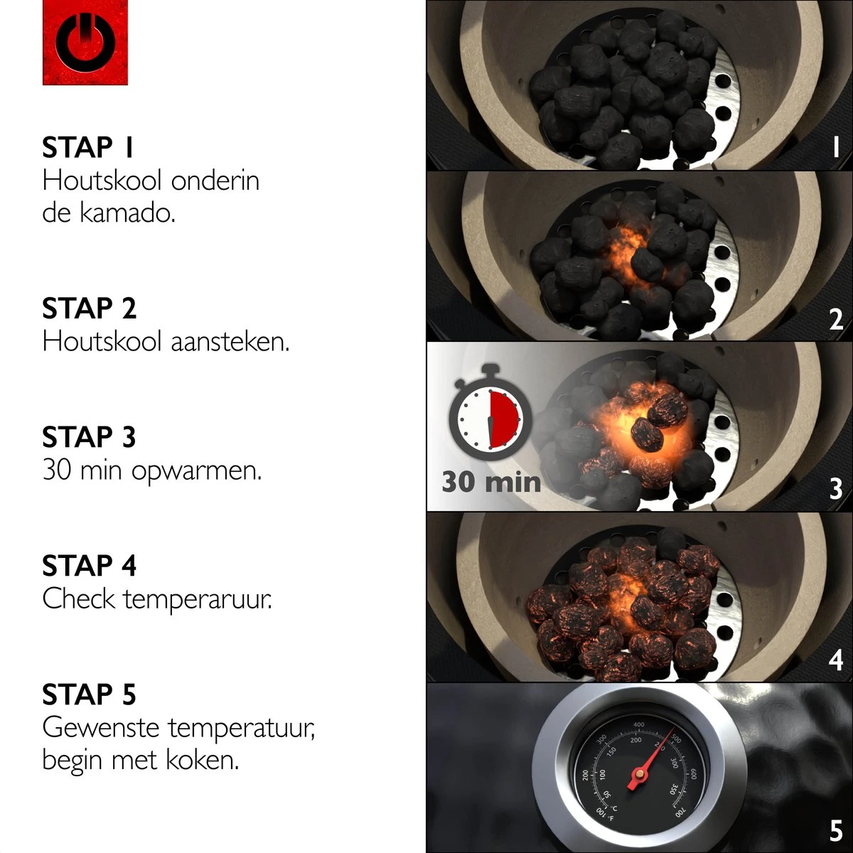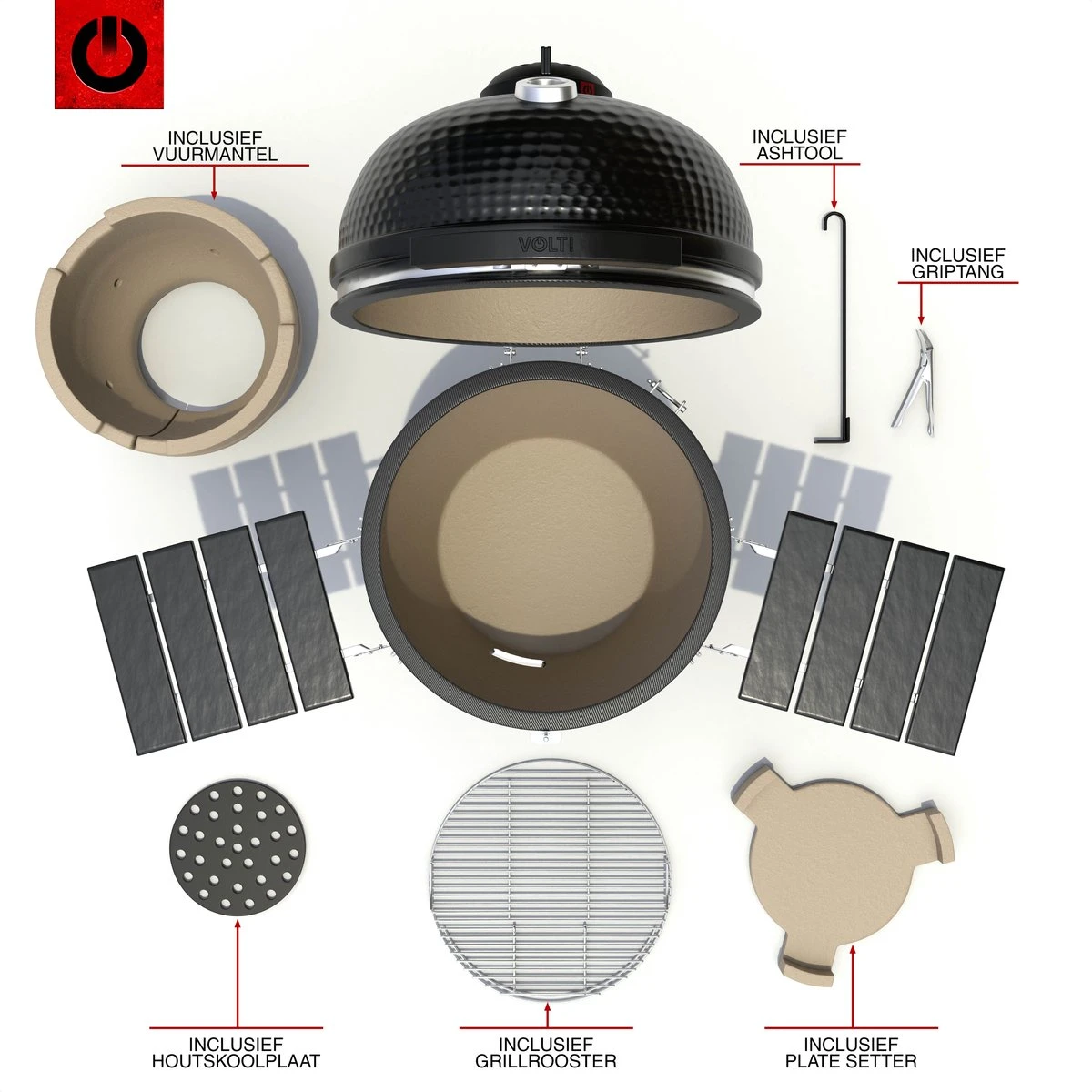 Il est temps de profiter d’un barbecue dans le jardin, mais vous n’arrivez pas à faire cuire les plats parfaitement ? Puis le Kamado Céramique de VOLT ! exactement la cuisine d’extérieur dont vous avez besoin. La VOLTE ! Les kamado sont de qualité industrielle et chaque plat sera donc parfaitement préparé. Nous livrons le Kamado Plug & Play . Cela signifie inclure de nombreux accessoires et accessoires de BBQ Kamado, pour que vous puissiez vous déchaîner tout de suite !