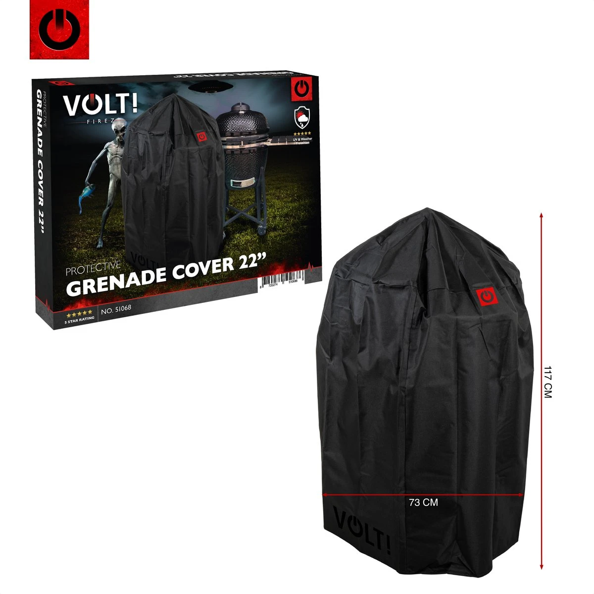 Notre housse est imperméable et c’est grâce au tissu PVC que nous utilisons. Cela protège du vent et de la pluie et le Kamado est également protégé contre les rayons UV. Un bon investissement ! La housse de protection a été spécialement développée pour les grilles Grenade de VOLT!, mais elle s’adapte également sur les Kamado d’autres marques. Nous avons 3 tailles différentes, alors vérifiez bien les dimensions et vous trouverez toujours la bonne. Le couvercle peut résister à la chaleur, mais il est important que le Kamado, y compris les pièces, ait suffisamment refroidi.