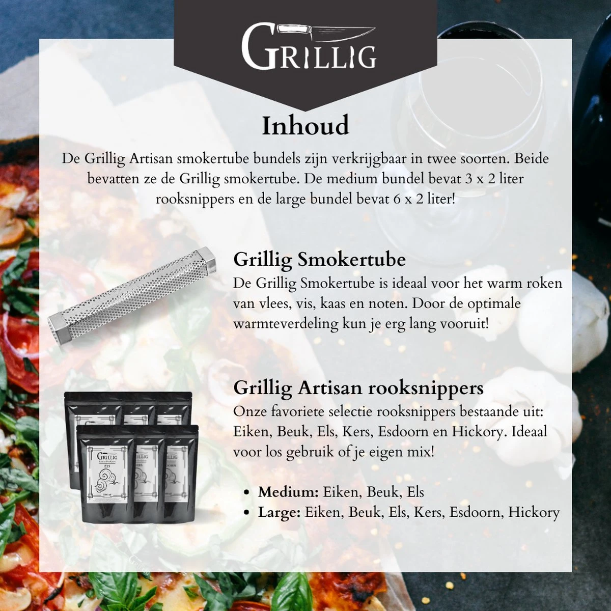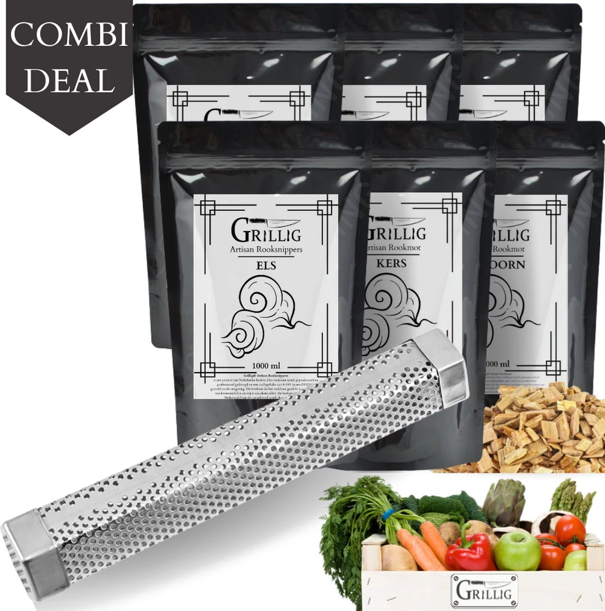 Le bois fumé est ce qui donne du goût à vos produits. Choisissez donc le bois qui voor jou convient le mieux ! (par exemple pomme, hêtre, aulne ou un mélange. Chez Grillig, nous avons une gamme sans cesse croissante de mites de fumée, de copeaux et de morceaux !