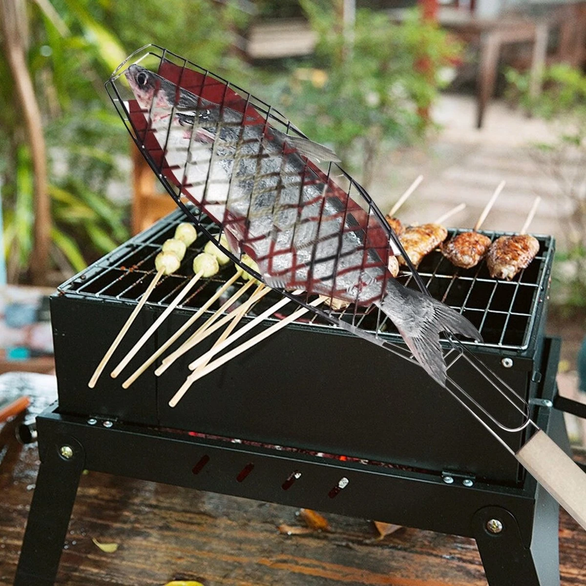 Êtes-vous un maître du BBQ ? Non seulement la viande est savoureuse lorsqu’elle est grillée, mais le poisson est également très apprécié pour le BBQ. Ne cherchez pas plus loin ! Ce gril pratique pour le poisson ne mesure pas moins de 57 cm de long et possède un manche en bois. Avec cette grille vous pourrez faire griller différents poissons sur votre BBQ. De plus, cette calandre est fabriquée dans un matériau de haute qualité.